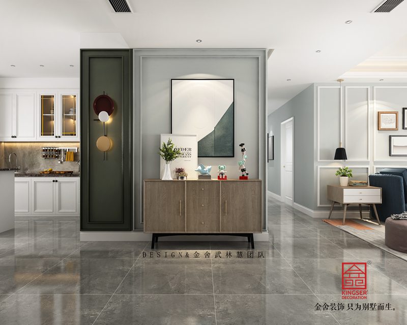 开门入户,时尚混搭气息扑面而来,左手边是墨绿的静谧与凹凸有致的线条搭配时尚跳色壁灯,金色与绿色在光照下的冲撞感,右边棱角分明的玄关柜,黑色磨砂质感的金属腿,呼应上精致复古的墨绿色挂画边框,每一个细节都将精美质感伶俐体现,一个时尚复古的北欧之家,就这样映入眼帘……