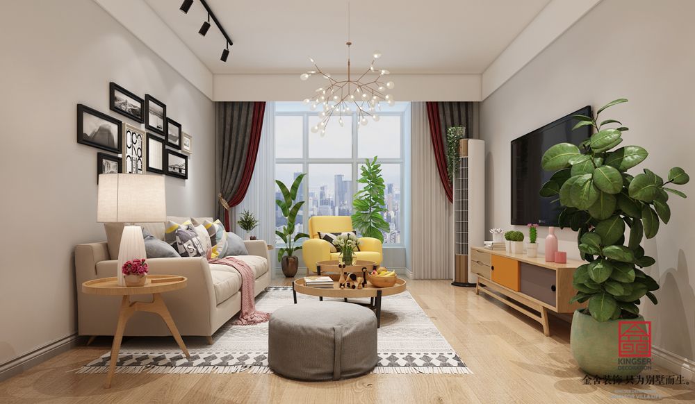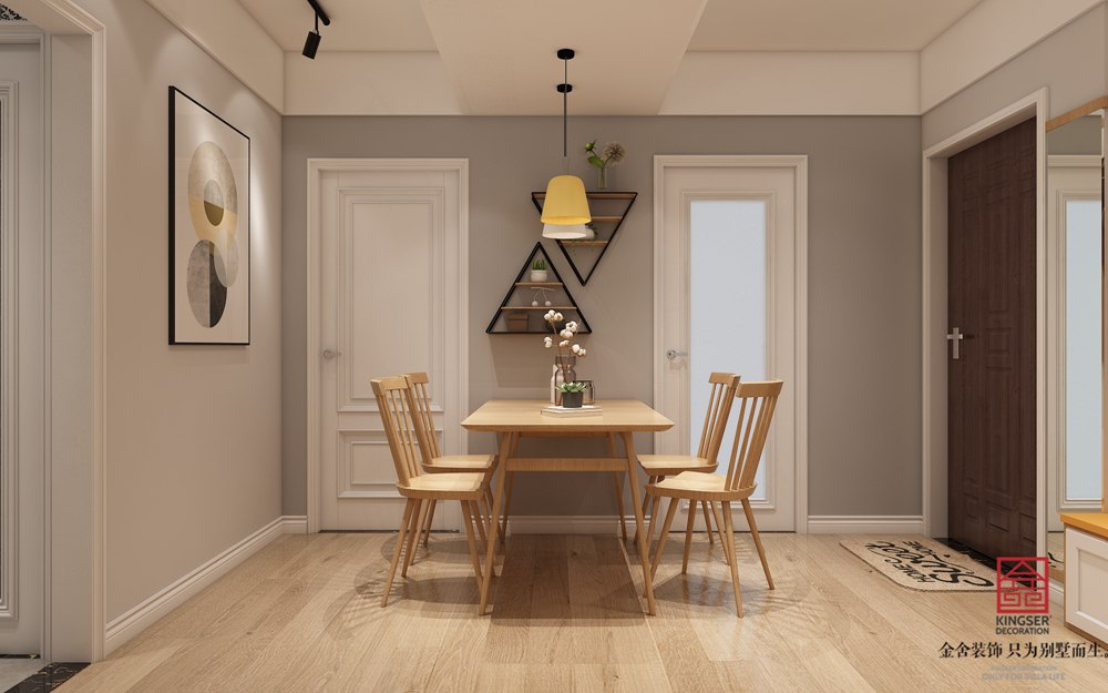 户型优点:精致的客厅,不失格调的小餐厅,电视墙一抹木色的点缀给了整个空间灵气。完美贴合了设计源于生活这句话。