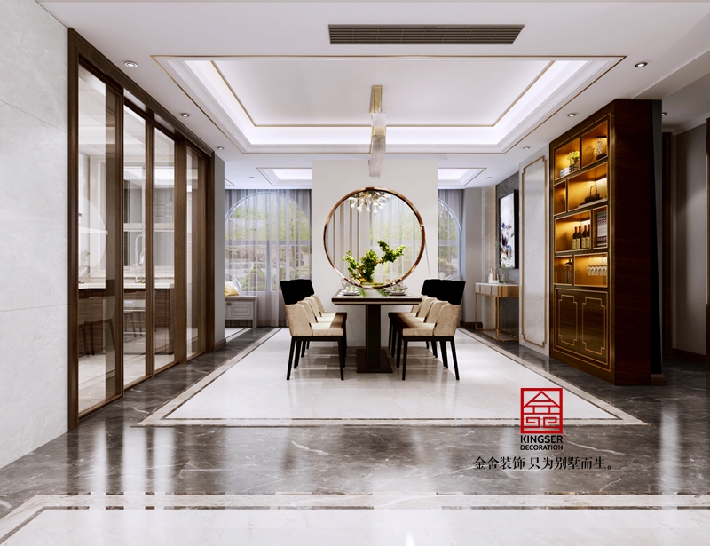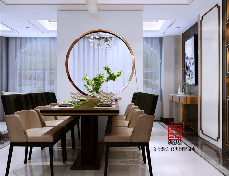 与传统的表现禅意的手法不同的是,此次在材质的选择上,摒弃了常用的低反光、粗朴质感的材料,而使用较为细腻、缜密的木及金属等等。空间的整体气质显得更为精致与高贵。