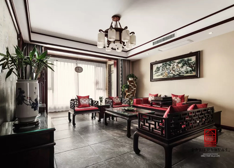 江南新城400平新中式风格别墅装修实景