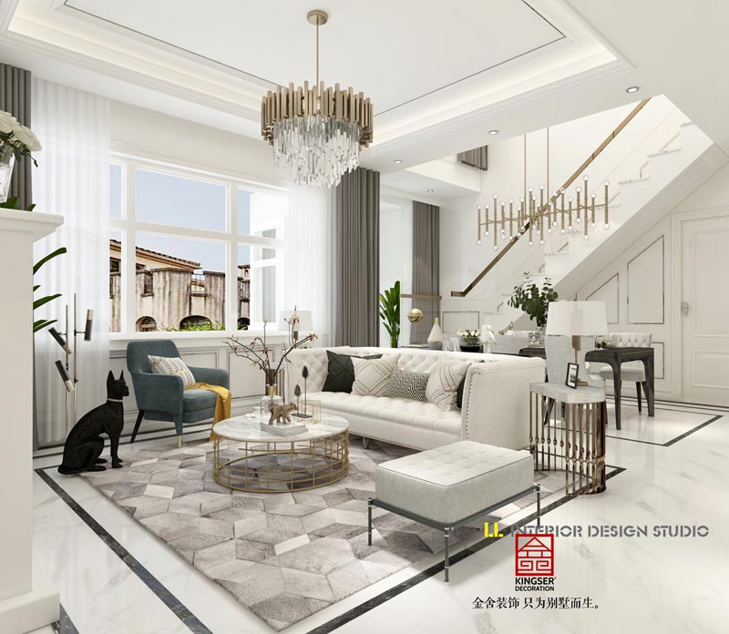 石家庄国宾壹号顶跃装修300平米户型轻法式效果图