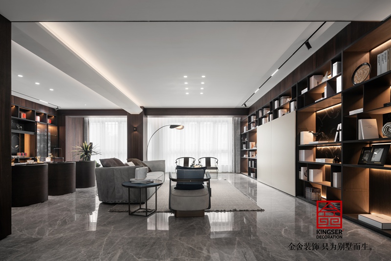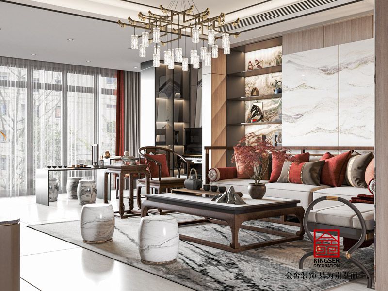 荣盛华府190平方江南新中式客厅装修设计