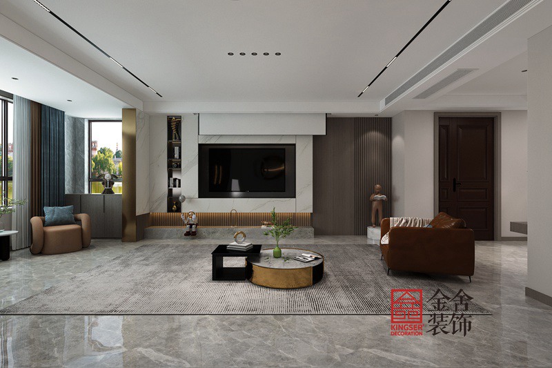 荣盛御府别墅装修轻奢风格效果图-客厅