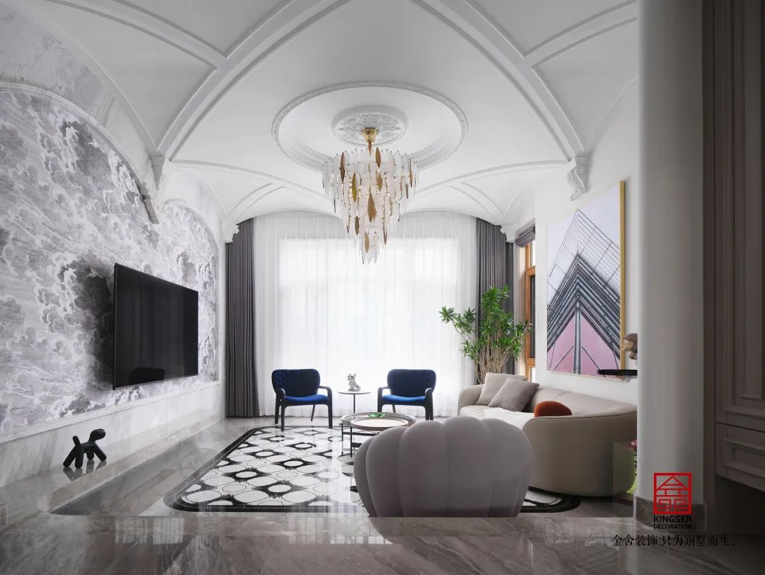 原河名墅法式风格客厅装修实景