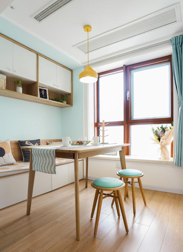 卡座的装修可以很好地利用起家里的墙角位置,不会占用太多的地方,很适合小户型的家庭。卡座在座位上没有人数的限制,也就是说就算家里来了很多客人,也可以依旧挤一挤坐上去!