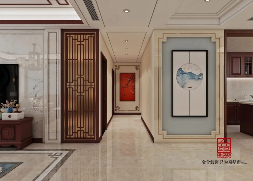 玄关有走廊还挺常见的,一般我们都会做上玄关柜,在不影响行走的同时,增加收纳空间。空间比较狭窄的建议做嵌入式的柜体。