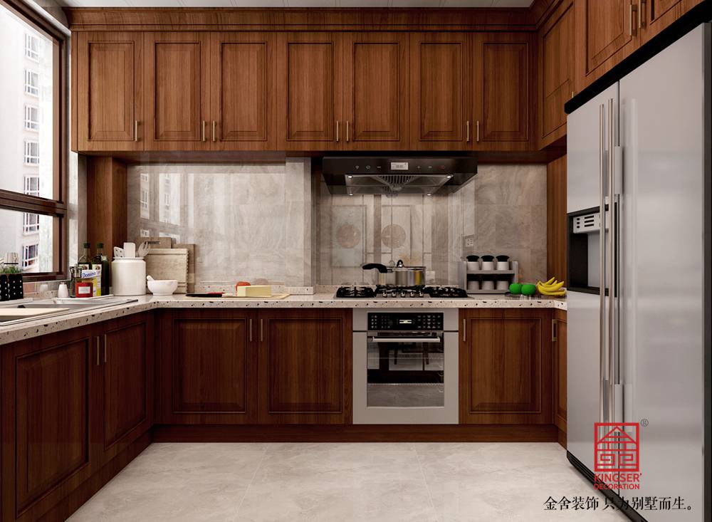 4、由于厨房是水蒸气较多的空间,天花板必须安装防水铝扣板,以防受潮。天花板不能太高或太低。高的不容易清洗,太低容易弄脏。