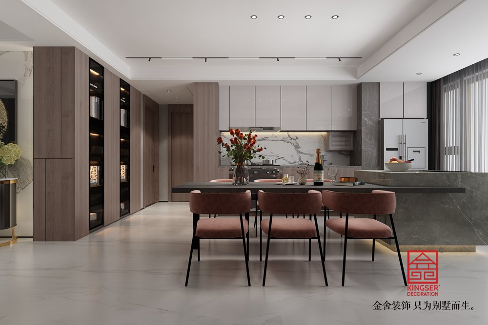 如果是小户型的空间,想要实现厨房的宽敞,就可以考虑餐厨一体的设计,然后在餐厅厨房之间可以装多一个小岛台,实现丰富多样的餐厨体验,让小户型的生活也更加有仪式感。