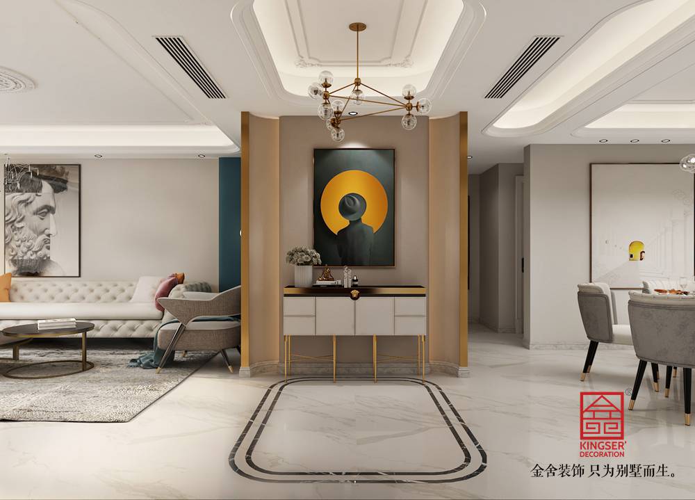 玄关最合适的面积是3-5平的空间中,对于正常的三口家庭在玄关中可以设计40-60厘米宽,150厘米长的鞋柜。外面可以放平时上班穿的外套,鞋子可以放在内部收纳,这满足我们平时的需求。要是5口人生活在一起,那柜子的长度就得增加到180厘米,宽度120厘米。这不仅会满足我们的使用也能让我们用的舒适许多。
