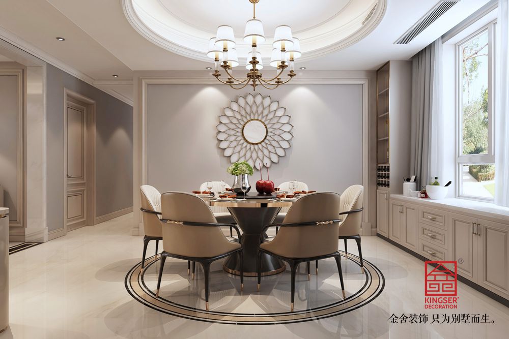 想要提升餐桌上的氛围,当然是少不了灯光的辅助,一家温馨的时刻在此能够得到展现,吊灯提供主照明,射灯增加氛围亮度,既起到照明的作用,还能增加空间的美感。