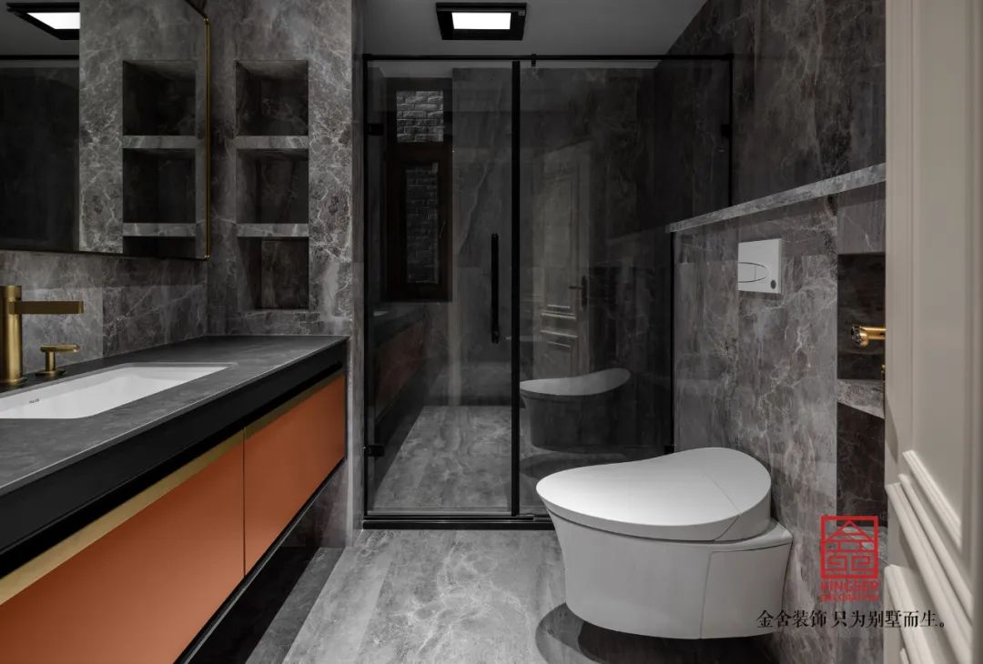 对于卫生间空间较小的情况,石家庄装饰装修公司建议把卫生间的门做隐形处理,让门和墙融为一体,就像推拉门一样。这种设计既节省空间,又能巧妙化解风水难题,让整个空间看起来更加整洁、统一。