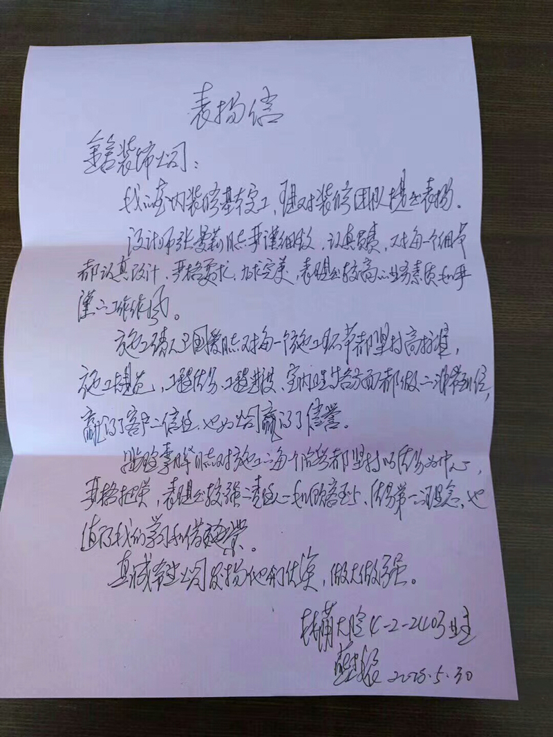 > 林荫大院燕总致石家庄taptapvip入口装修感谢信