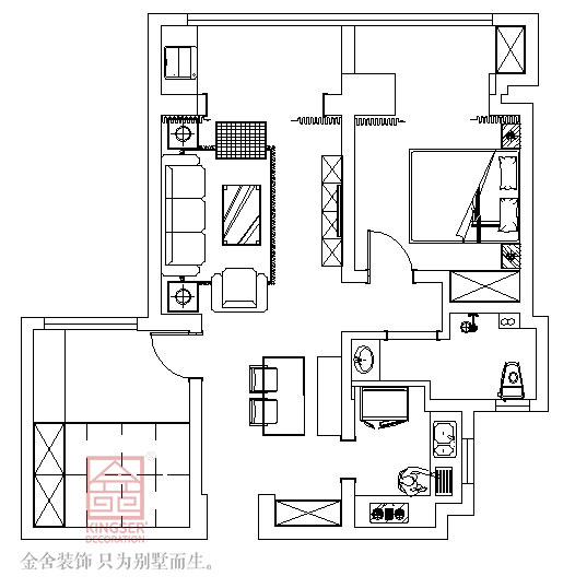 3:厨房冰箱位置利用了卫生间的尺寸,使厨房能够很好的满足冰箱的尺寸,方便使用