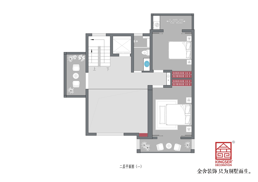 二层:豪华起居室配享大界面景观阳台,将最大化容纳生活景致; 起居室融汇贯通,凸显主人尊崇的居家品味,尽显优越气派生活
