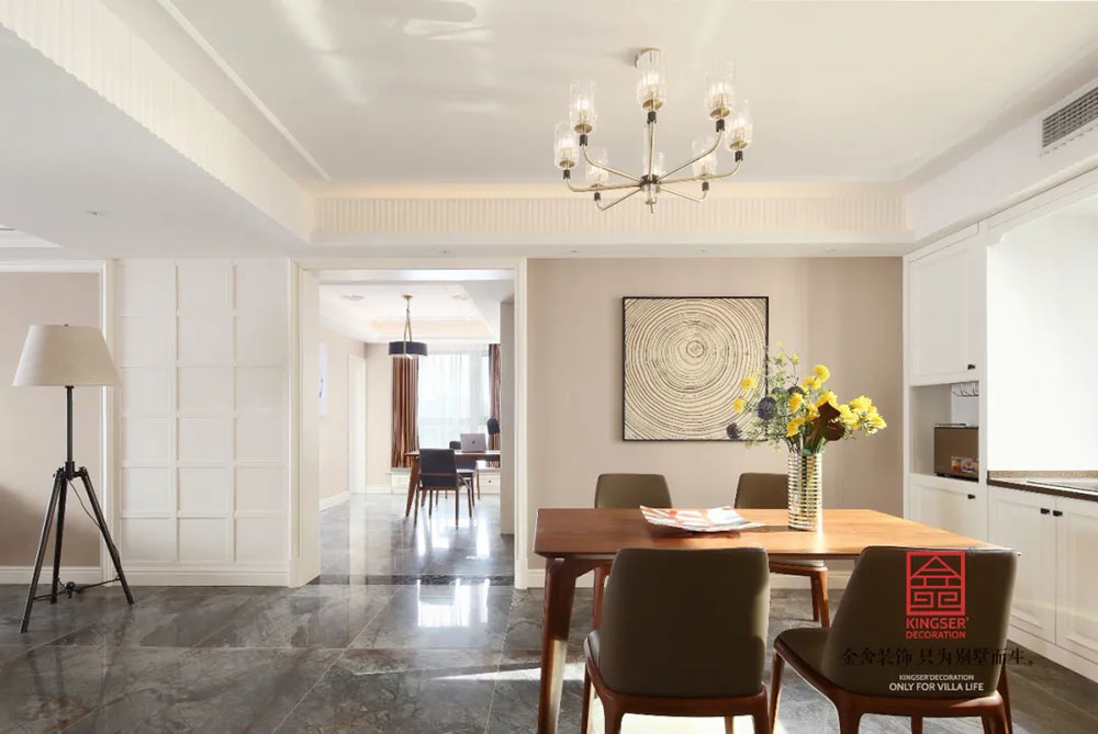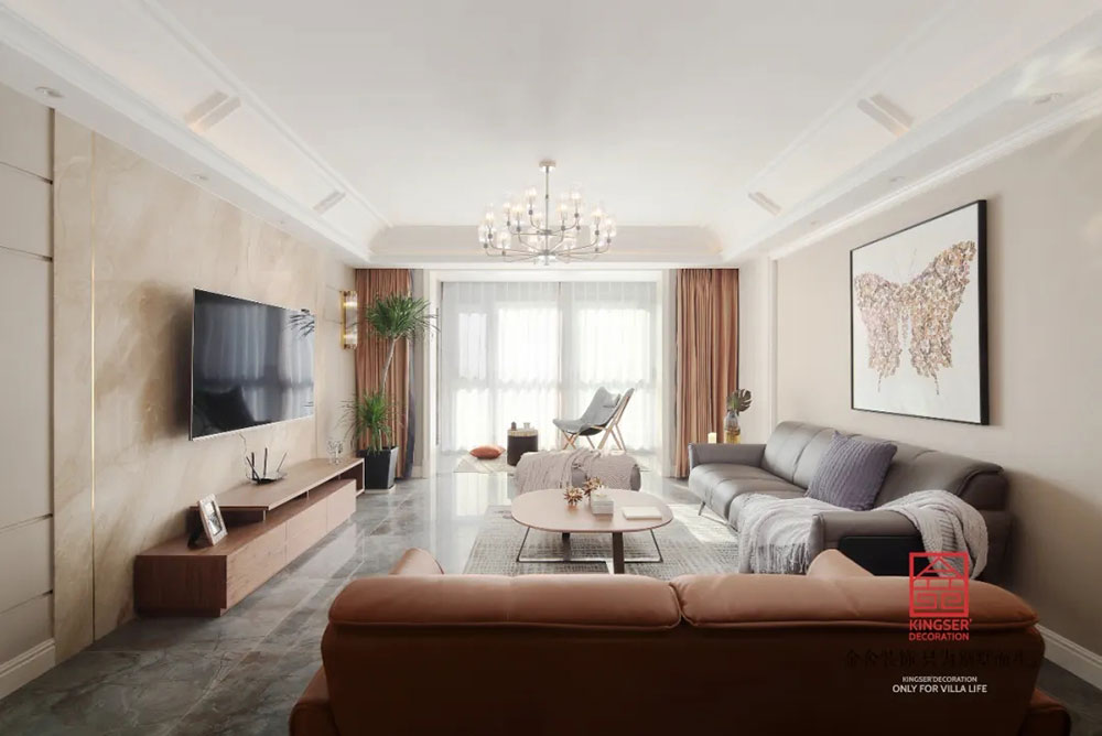 此案例为石家庄taptapvip入口装饰-奥北公元165平米轻奢风格装修实景图。生活的纷扰,工作的繁杂,多少人在渴望去寻找片刻的清净时光。「轻奢风格」,恰好迎合了这个时代人们的需求,删繁就简的期许,留一片纯净、清静、自然的空间,一片让人们沉醉的自我世界。