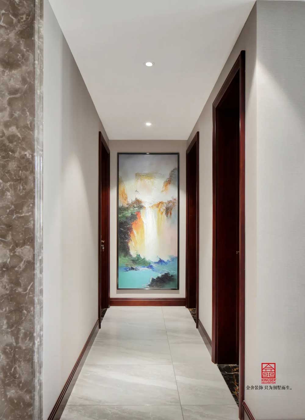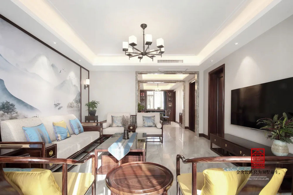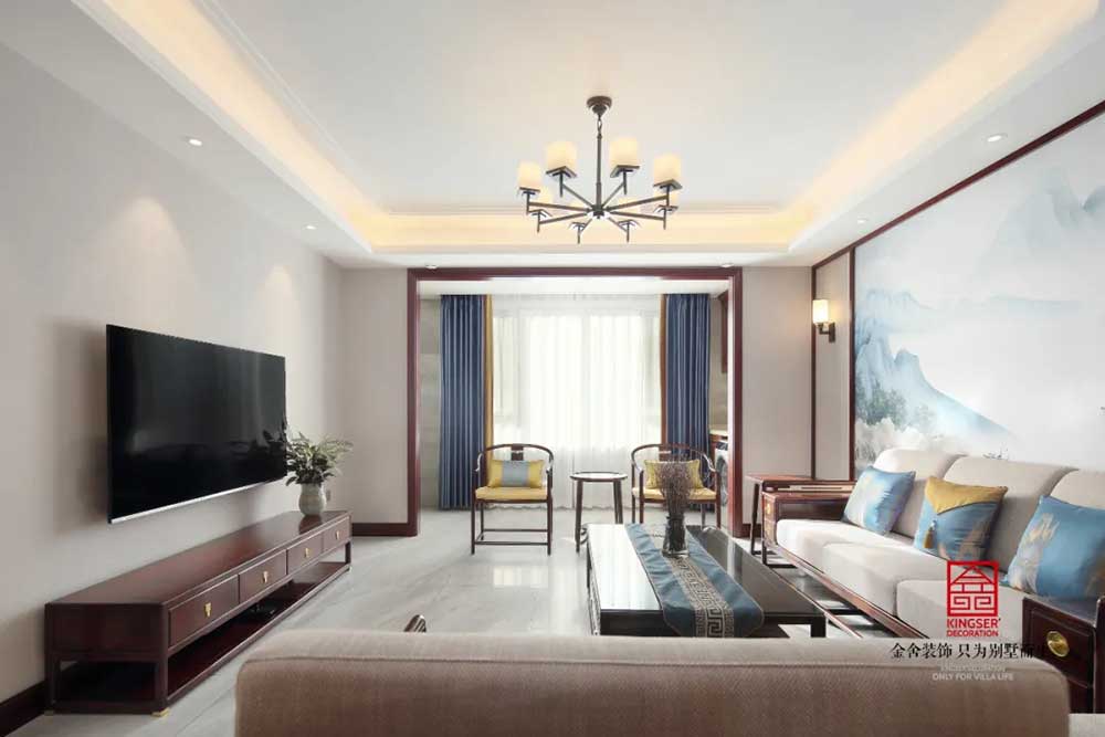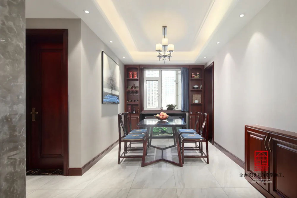 此案例为石家庄taptapvip入口装饰-保利拉菲公馆150平米新中式风格装修实景。新中式风格发展到现在就像是一个已经趋近饱和的瓶子一样,有水进去自然就会有水流出。对于中式风格来说,每个元素都是不可或缺的一部分,从古代石刻窗格的各种吉庆元素,到现在已经简化到只剩下核心的颜色和少量的配饰,抛繁就简,回归平淡,这是一种发展,也是一种人们对于简单生活的憧憬和向往。