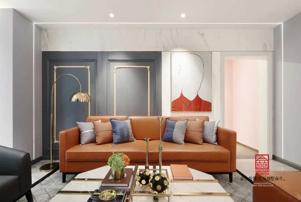 色彩搭配再次成为此空间中的亮点,各种深浅的蓝、橙色层次交错,渲染出独特而浓郁的艺术气质。简化的线条和纤细的几何图形,几笔便勾勒出现代的摩登与简洁。