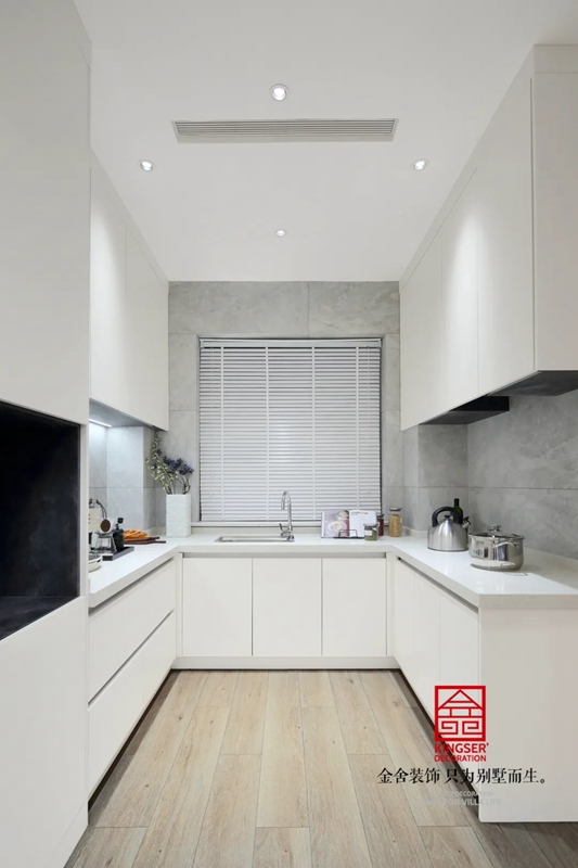 纯净到了极致就是梦幻,纯白的橱柜,淡灰色的墙砖,初入其中能感受到的不光是纯净,更是一种似孤傲、又似神秘的寂静。寂静的空间,凝滞的空间,孤独的空间。