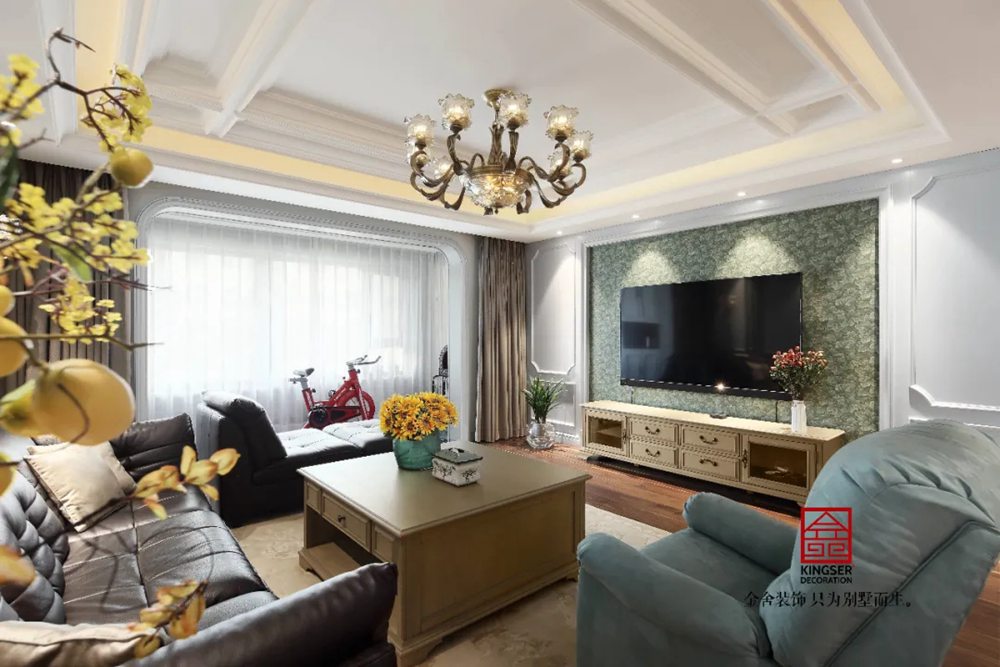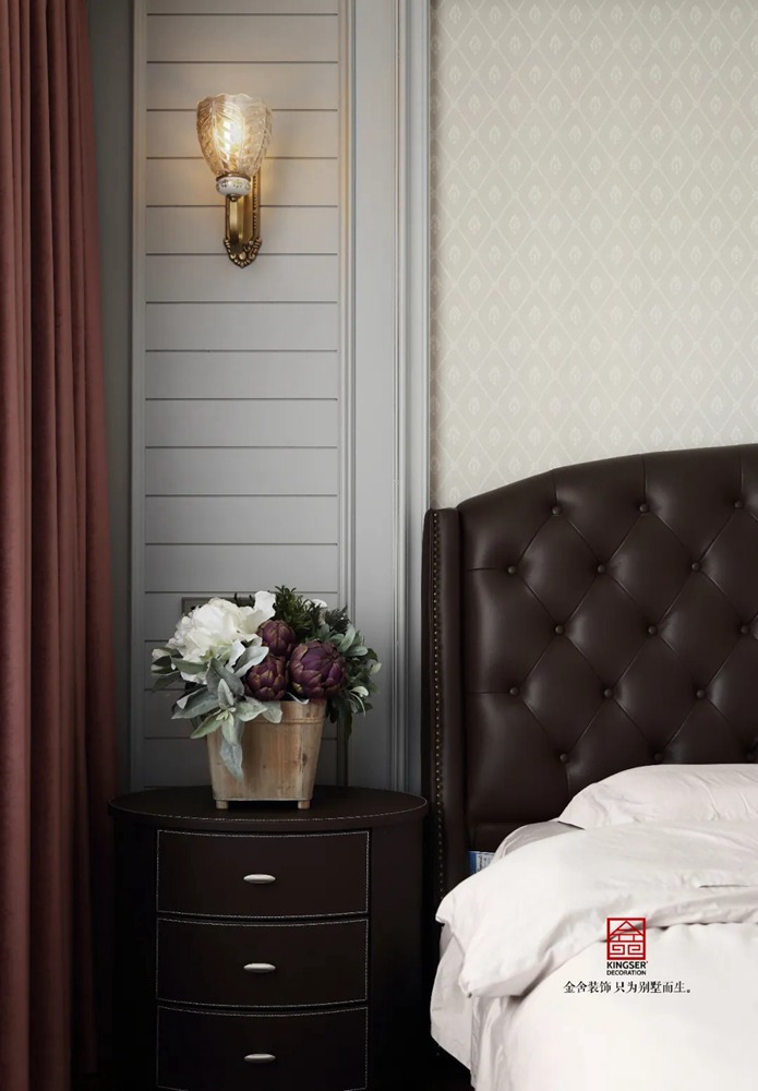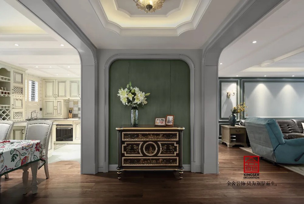 客厅绿色的点缀在静谧的空间里恰到好处,完美之处在于步入入户门的这一刻,映入眼帘的皆是经典简约美式元素,圆润的造型、浪漫的素色基调、温暖的木质材料、极具讲究的家具和灯饰。这种享受就好像是在回味经典电影中的浪漫情节,灰黄色的记忆,罗曼蒂克的生活。