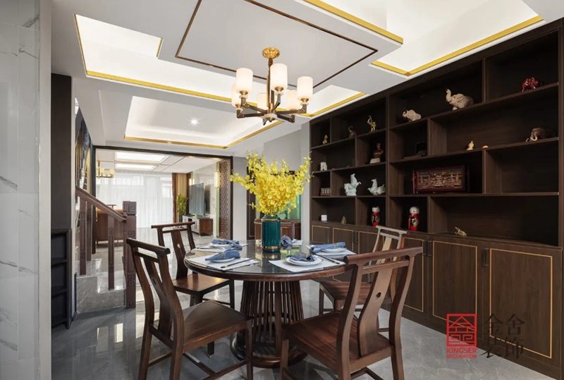 此案例为石家庄装修公司-正定墅洋居礼240㎡新中式风格装修实景。岁月的味道,融入了太多了的情感,有名利,有思念,有得失,有感伤,人生的不完美正是有这些因素所交织创造的,可以说活在这个世界上每天都在跟自我较劲,今日的自己一定要比昨日的自己更优秀,不光是为了自我的肯定,也是为了能够找到那个属于自我的定位与生活。人生的感悟萦绕在脑中,就像永远躲不开的“人生三个问题”一样,必然经历但是无解。