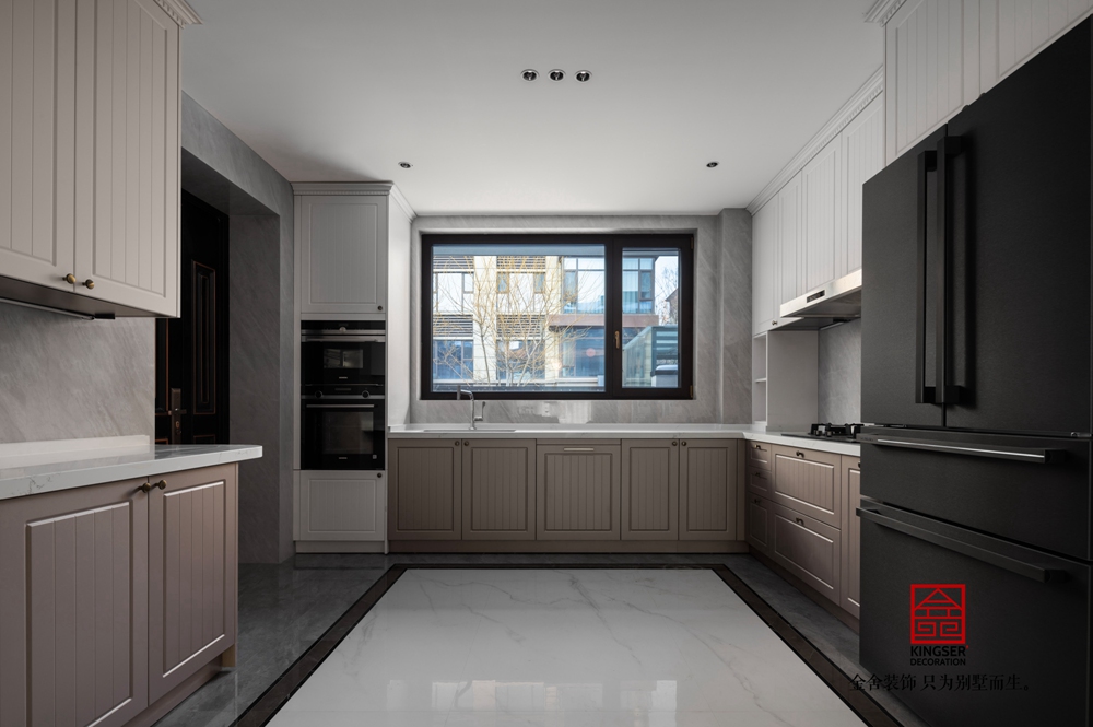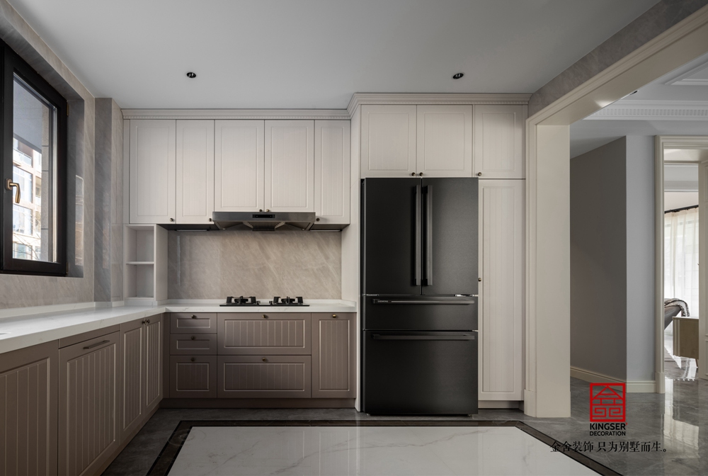 餐厅空间采用了透光奢石,这种材质以其高贵的气质和独特的纹理,为餐厨空间增添了一份奢华感。