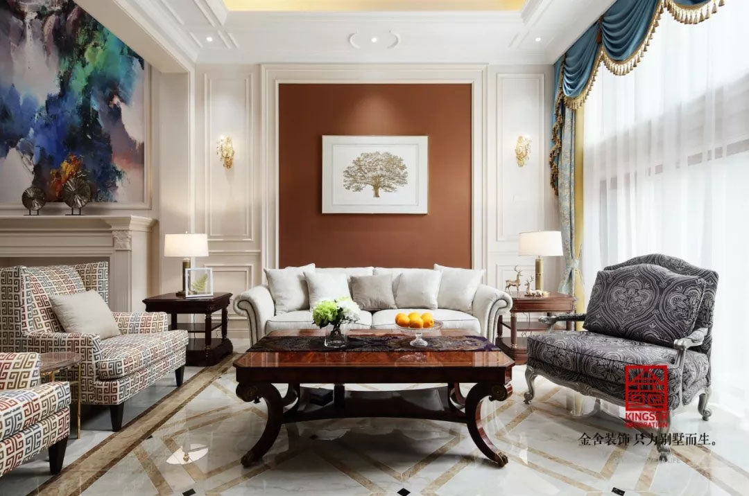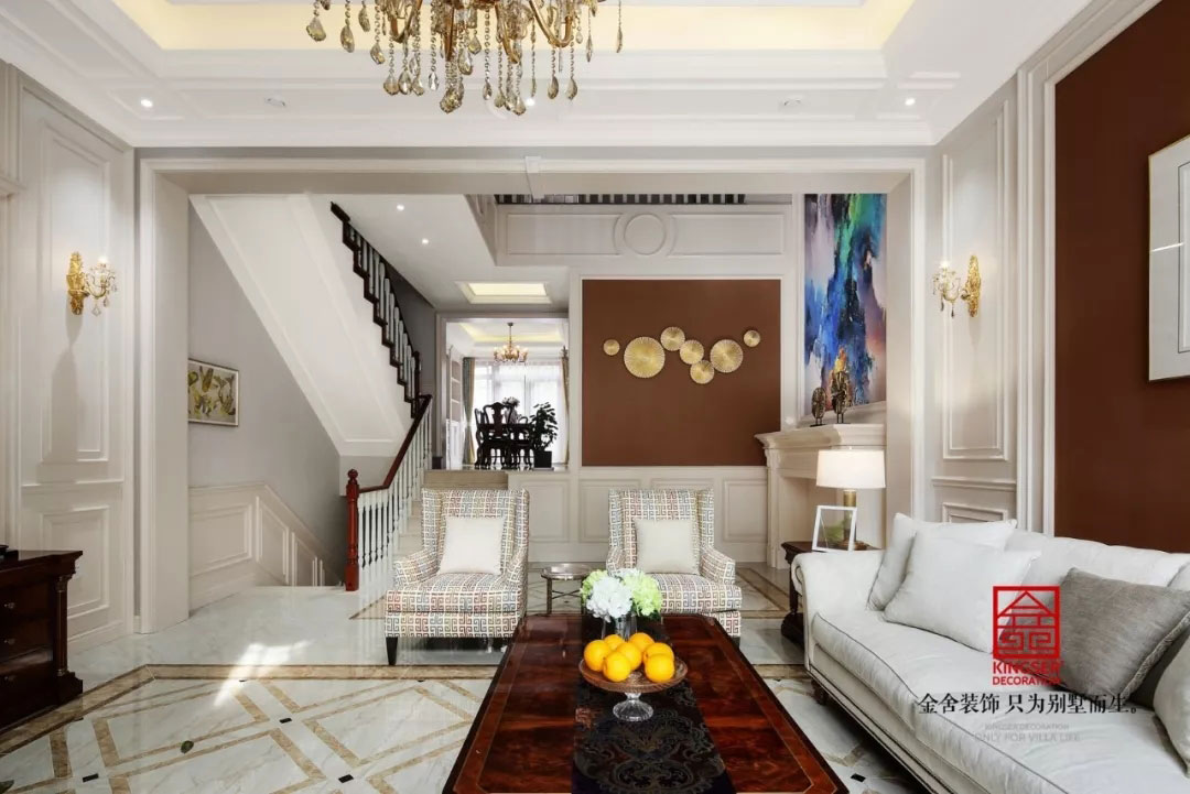 此案例为石家庄别墅装修-蓝郡别墅600平米美式风格装修实景。色彩斑斓的配色带着现代生活憧憬的意味融化在现代家居之中,畅想的时尚感萦绕在不断变化的设计之中,有尝试,有徜徉;有幻梦,有臆想,每一个对于生活的畅想都将人们带到另一种生活之中,通透的色彩象征着一种生活态度,生活的真谛不在于奢华的享受,在于生活的舒心和内心的平静!