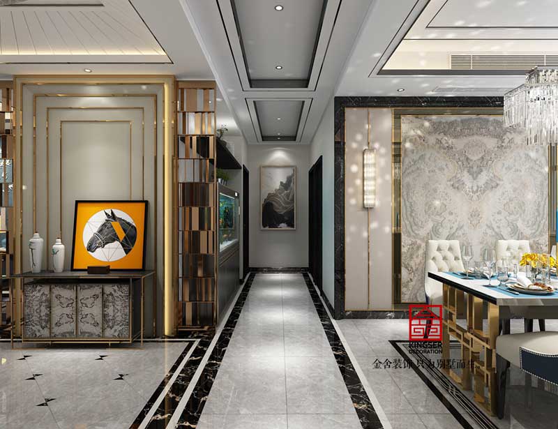 此案例为石家庄taptapvip入口装饰-荣盛华府185平米港式风格装修效果图。港式风格家居也有其自身特点,多以金属色和线条感营造金碧辉煌的豪华感,简洁而不失时尚。