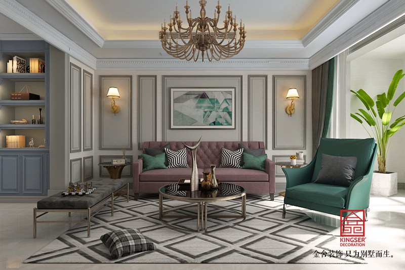 简美式的家装在房屋设计、家具打造、色彩处理和元素拼接上都力求简单化,通过不拘一格的线条设计加简洁单一的色调,给人们提供最爽朗、最清脆的住宅环境。