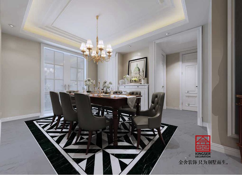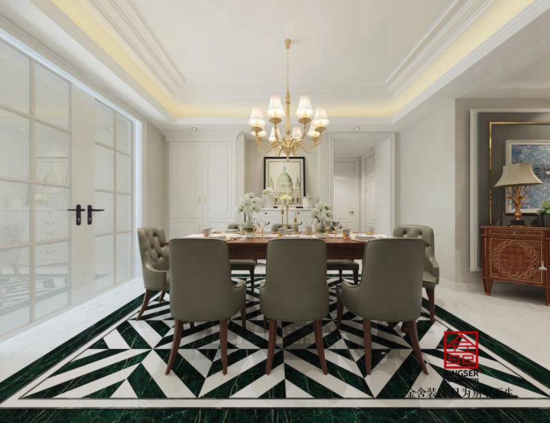 美式风格一般要求简洁明快,同时装修较其它风格要更明快光鲜,通常使用大量的石材和木饰面装饰