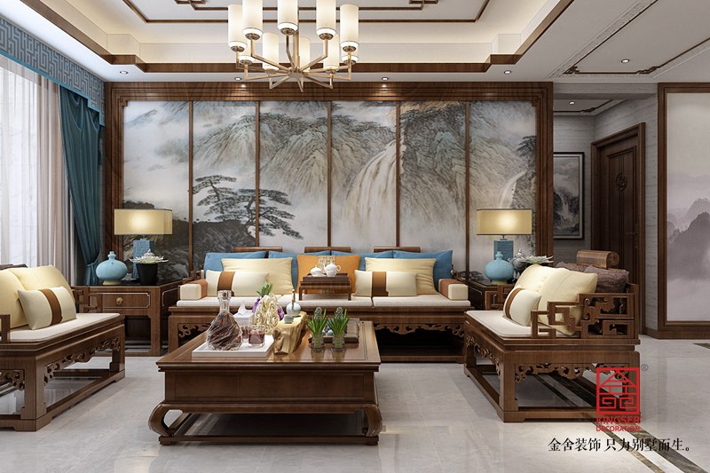 中式风格的设计不同于现代风格的简约型设计,通过对传统文化的认识,将现代元素和传统元素结合在一起,以现代人的审美需求来打造富有传统韵味的事物,体现出了中国传统的古典艺术韵味