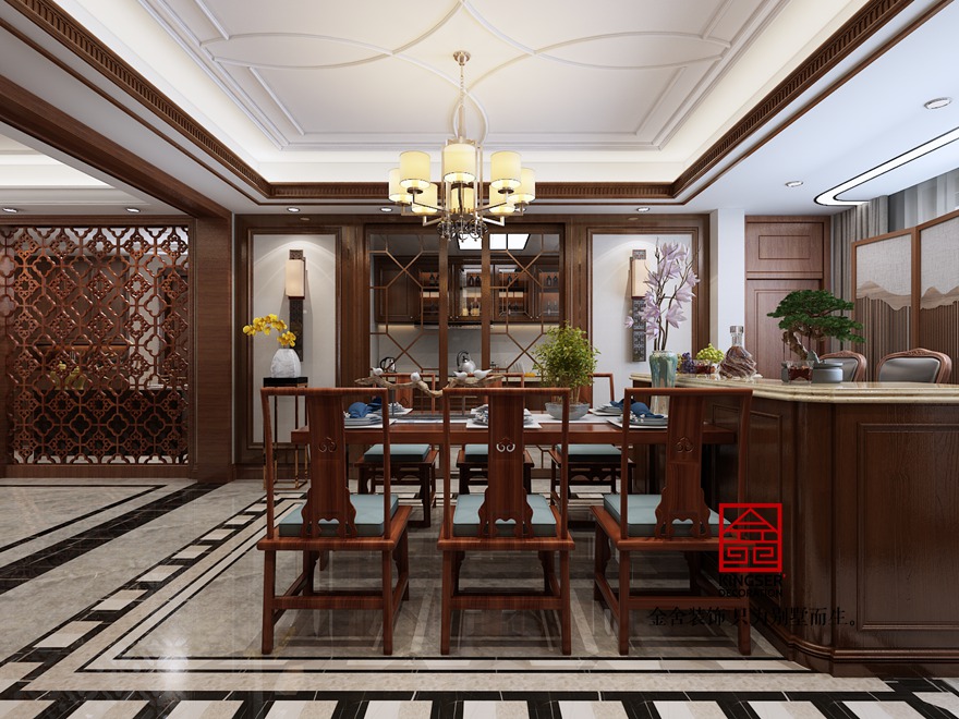 设计说明:此案例为石家庄taptapvip入口装饰-御河上院219平米新中式装修效果图。 功夫在诗外 功夫更在设计之外