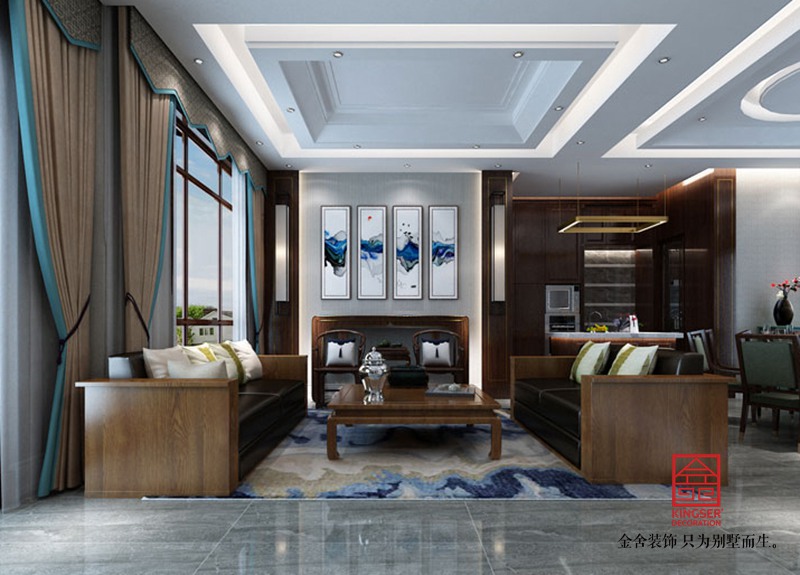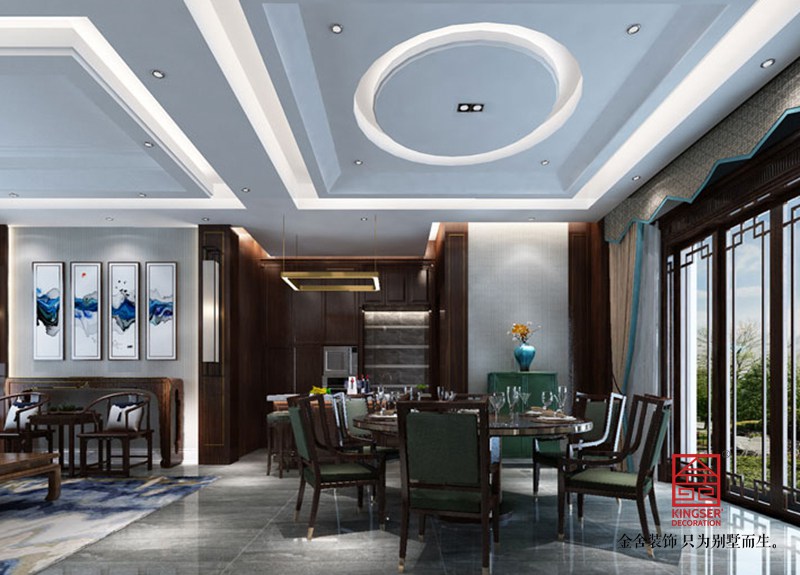 设计说明:此案例为石家庄taptapvip入口装饰-西山林语303平米中式风格装修效果图。新中式风格将中国传统文化的元素融入到现代人的生活环境和审美上的一种新型风格,这样的设计体现出传统文化的元素,又能表达现代人对古典文化的喜爱。现在越来越多的人开始喜欢这种风格的设计,因为新中式是以现代人的审美需求来打造富有传统韵味的事物,让传统艺术在当今社会上得到合适的体现。开放式的厨房,最大限度提升业主对生活的热爱和创想。