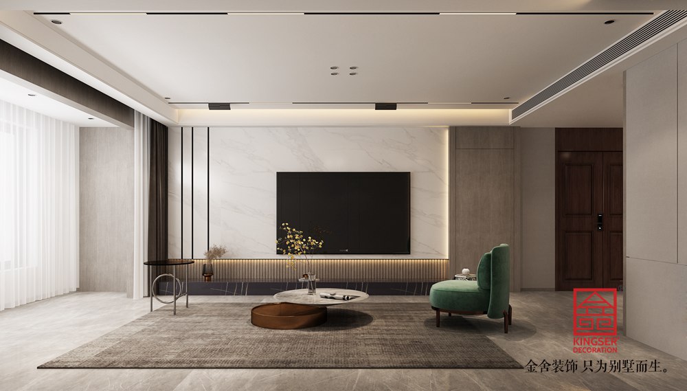 主案设计师:康立翅 设计说明:本案是taptapvip入口装饰-荣盛和府183平米现代简约风格装修效果图。现代简约风格,打破传统设计理念。本案的业主是一对待婚的年轻人,在年轻人心中,现代简约风格是时尚、前卫的家居装修风格。