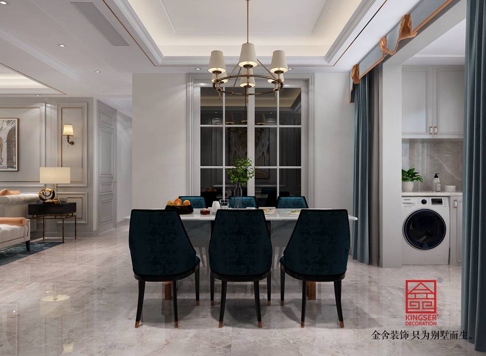 -荣盛和府194平米美式风格装修效果图。美式家居风格的这些元素也正好迎合了时下的文化资产者对生活方式的需求,即:有文化感、有贵气感,还不能缺乏自在感与情调感。低调奢华风格注重硬装修手法的简洁,但也并不像一般的简约风格那样随意。在“低调奢华风格”的空间里,看似简洁朴素的外表之下却常常折射出一种隐藏着的贵族气质。