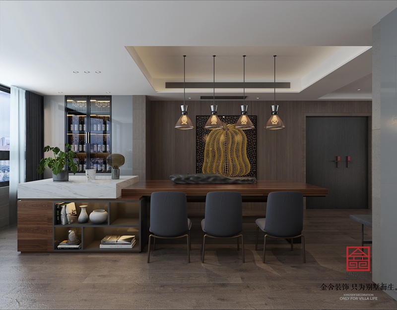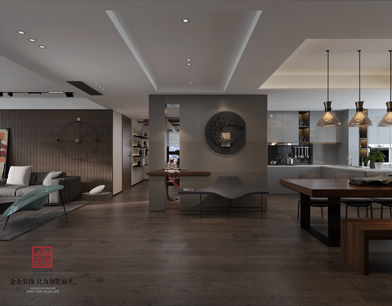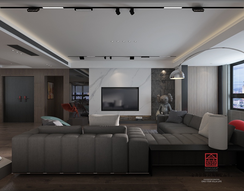 设计说明:此案例为石家庄taptapvip入口装饰-荣盛华府190平米现代极简风格装修效果图。现代人面临着城市的喧嚣和污染,激烈的竞争压力,还有忙碌的工作和紧张的生活。因而更加向往清新自然、随意轻松的居室环境。越来越多的都市人开始摒弃繁缛豪华的装修,力求拥有一种自然简约的居室空间。少即是多,以宁缺勿滥为精髓,合理的简化居室,从简单舒适中体现生活的精致,体块构成把所有的内容糅合在一起,又让喧闹中有了主线,有了宁静,给人以心灵的休憩。