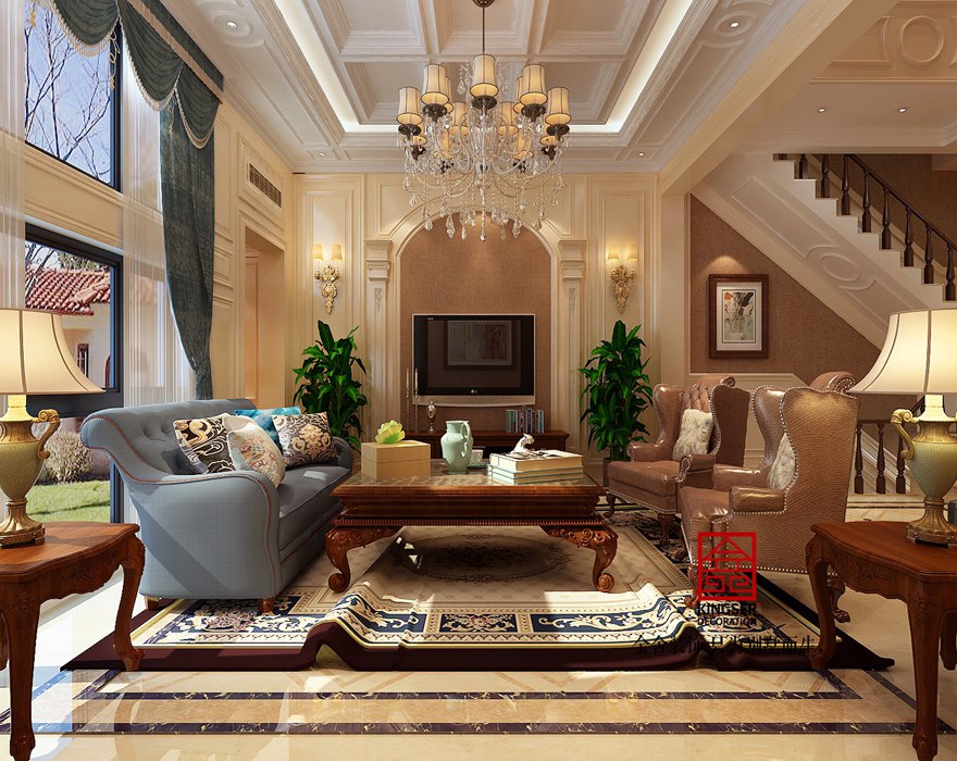 设计说明:此案例为石家庄别墅装修设计公司-蓝郡300平别墅欧式装修效果图。年轻人比较喜欢用钢制材料配饰来装点空间,但这与讲求繁复雍容的欧式装修风格来说确是“水火难容”的。这些元素对于欧式风格空间简直可以说是毁灭性的的打击。总之欧式风格的重点在于给观者带来一种略显沉重的古典文化气息,金属感十足的元素尽量要避免。