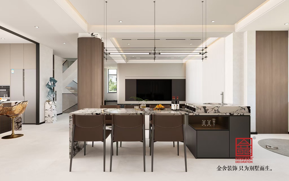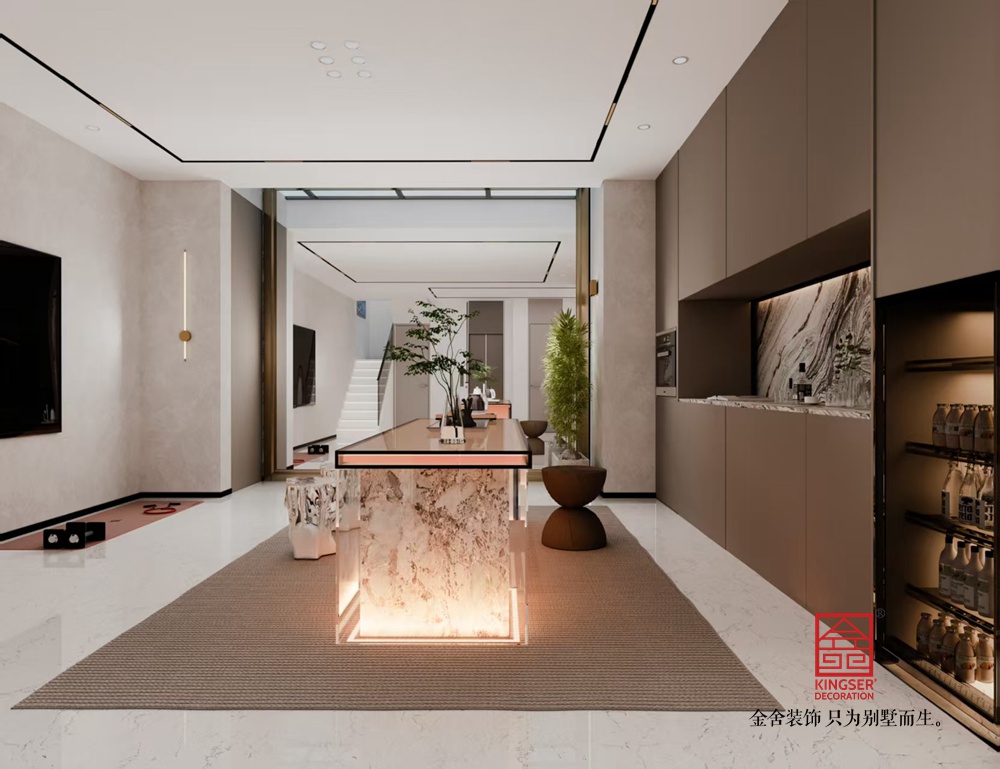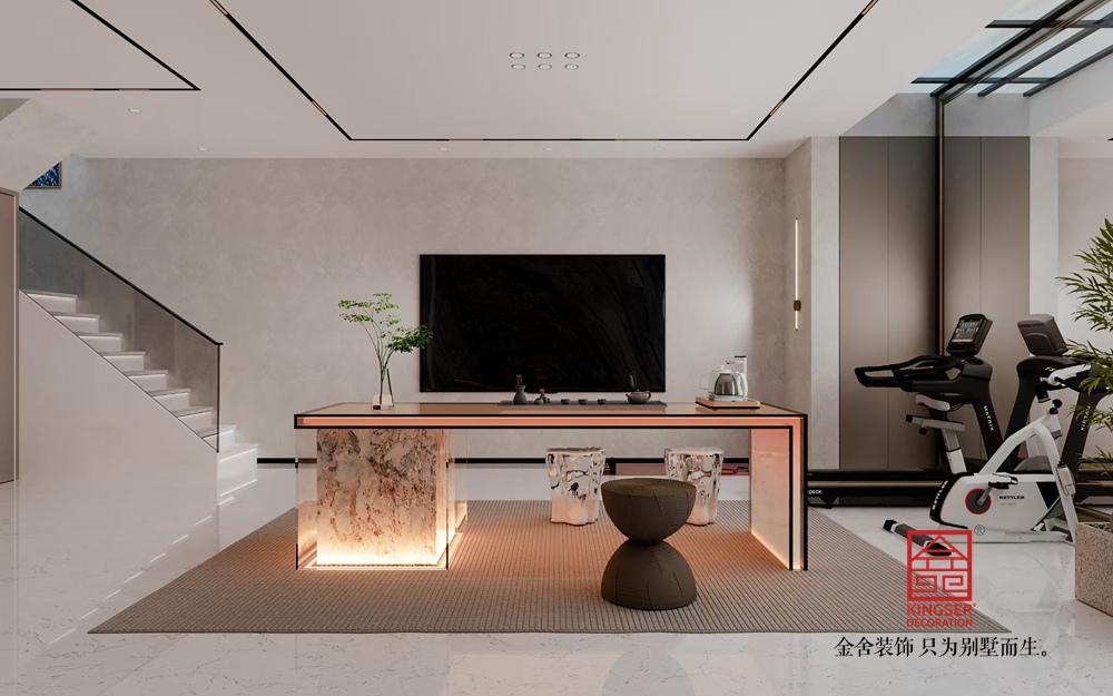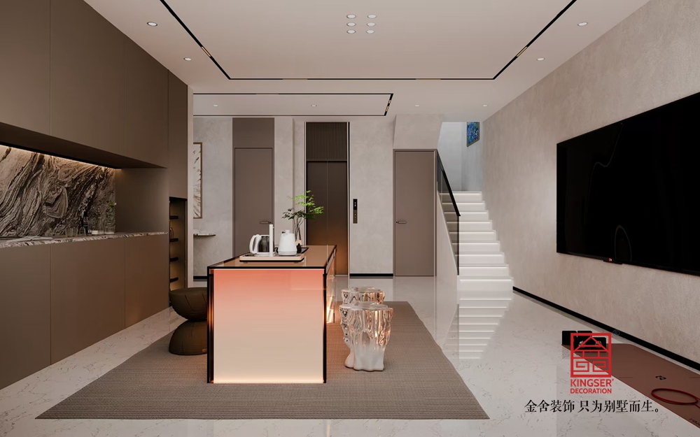 设计说明:该客厅以 “极简美学与轻奢质感的共生” 为设计理念,从空间布局、材质运用到细节塑造,展现出别墅生活的雅致与舒适。